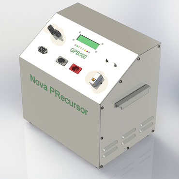 O GPB é um gabinete metálico com rodas e alça para fácil transporte.